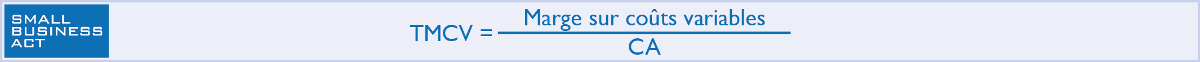 Ensuite vous calculez votre Taux de marge sur coûts variables (TMCV), qui est tout simplement votre marge rapportée à votre Chiffre d’Affaires :